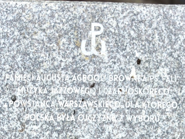 O postaci „Alego” wielokrotnie pisaliśmy w „Nowym Telegrafie Warszawskim”. Postać „Alego” pokazuje nam, że każdy może być Polakiem. Niezależnie od koloru skóry, narodowości, polskość oznacza to, czy mamy ją w sercu – mówił Nowemu Telegrafowi Warszawskiemu Jarosław „Jarema” Dubiel, działacz antykomunistycznej opozycji w okresie PRL, prezes fundacji Wolność i Pokój (“NTW”, wrzesień 2020). To właśnie fundacja WiP przez wiele miesięcy czyniła starania o upamiętnienie Powstańca. 2 sierpnia 2019 roku na Pasażu Wiecha odsłonięto jego pomnik.  August Agbola Brown urodził się 22 lipca 1895 roku w  Lagos, w Nigerii. To polski muzyk pochodzenia nigeryjskiego. Prawdopodobnie jedyny czarnoskóry uczestnik powstania warszawskiego. Jak podaje Wikipedia do Polski trafił w 1922 roku, mieszkał przy ulicy Złotej w Warszawie.  Był muzykiem jazzowym – perkusistą, grał  w warszawskich lokalach rozrywkowych.  Jak sam twierdził walczył w obronie stolicy w roku 1939. Na sto proc. potwierdzone są informacje na temat jego uczestnictwa w Powstaniu Warszawskim.