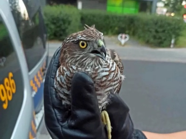 Uszkodzone skrzydło i noga, brak możliwości lotu – to obrażenia krogulca, który najprawdopodobniej uderzył w budynek przy Towarowej.